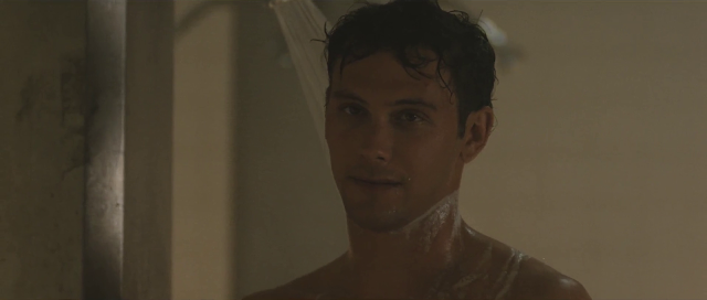 The scene is notably intimate, with Erik and Tony(Brandon Santana) exchanging glances as they wash.